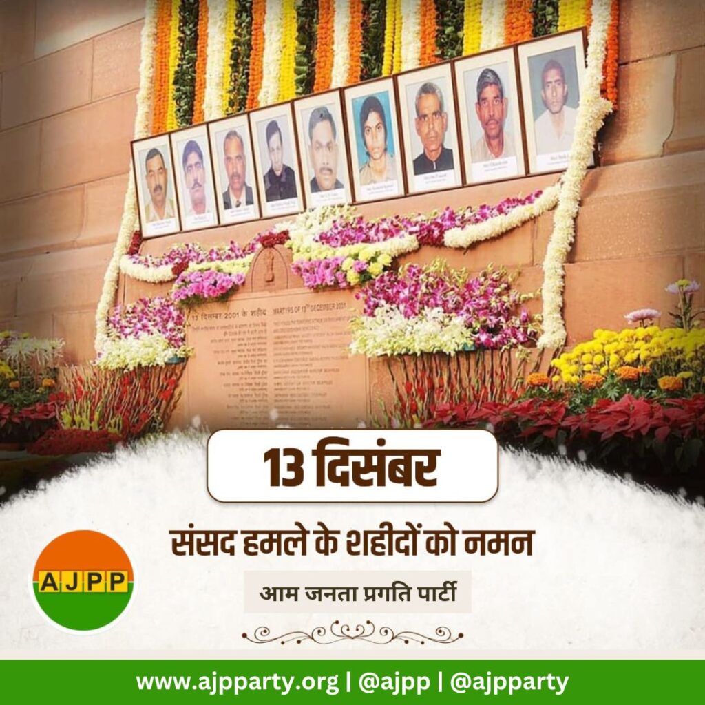 13 दिसंबर 2001 को संसद भवन पर हुए आतंकी हमले में अपने प्राणों की आहुति देकर लोकतंत्र के मंदिर की