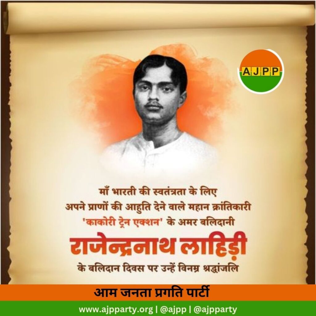 рднрд╛рд░рдд рдХреА рд╕реНрд╡рддрдВрддреНрд░рддрд╛ рдХреЗ рд▓рд┐рдП рд▓рдбрд╝реА рдЧрдИ рд▓рдбрд╝рд╛рдЗрдпреЛрдВ рдХреА рд╢реГрдВрдЦрд▓рд╛ рдореЗрдВ рдЕрдкреНрд░рддрд┐рдо ‘рдХрд╛рдХреЛрд░реА рдЯреНрд░реЗрди рдПрдХреНрд╢рди’ рдХреЗ рдорд╣рд╛рди рдХреНрд░рд╛рдВрддрд┐рдХрд╛рд░реА, рдорд╛рдБ рднрд╛рд░рддреА рдХреЗ рдЕрдорд░ рд╕рдкреВрдд рд░рд╛рдЬреЗрдиреНрджреНрд░рдирд╛рде рд▓рд╛рд╣рд┐рдбрд╝реА рдХреЗ рдмрд▓рд┐рджрд╛рди рджрд┐рд╡рд╕ рдкрд░ рдЙрдиреНрд╣реЗрдВ рд╡рд┐рдирдореНрд░ рд╢реНрд░рджреНрдзрд╛рдВрдЬрд▓рд┐ред