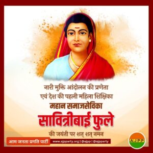 स्त्री-शिक्षा की अग्रणी, प्राथमिक शिक्षिका एवं महान समाज सुधारक क्रांतिज्योति सावित्रीबाई फुले जी की जयंती पर उन्हें सादर नमन। महिला